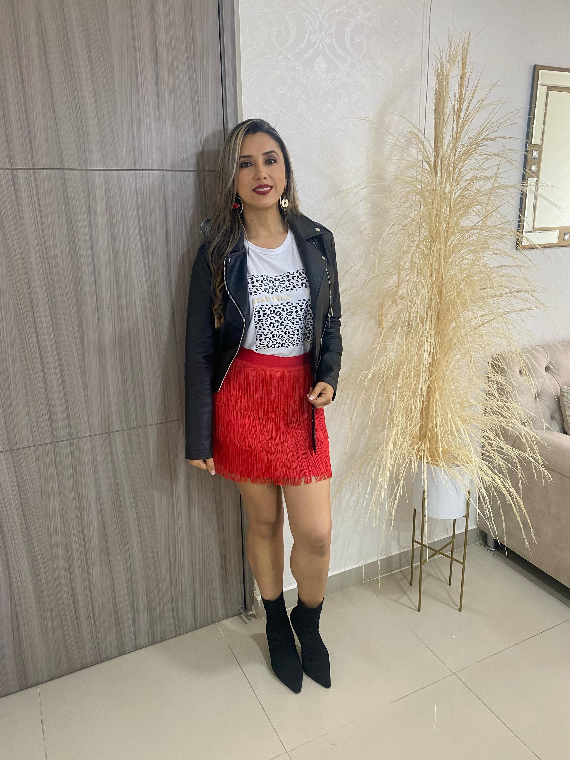 Falda de Flecos Corta Color Rojo